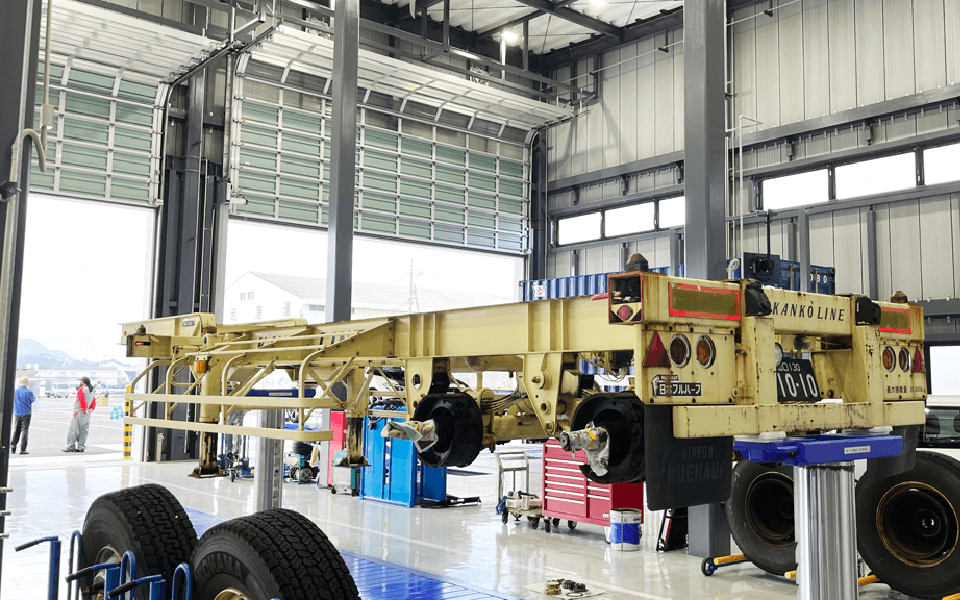 当社グループ会社の安全かつ迅速な運送サービスを提供できるよう、グループ会社で使用するコンテナシャ-シのメンテナンス業務を行っています。